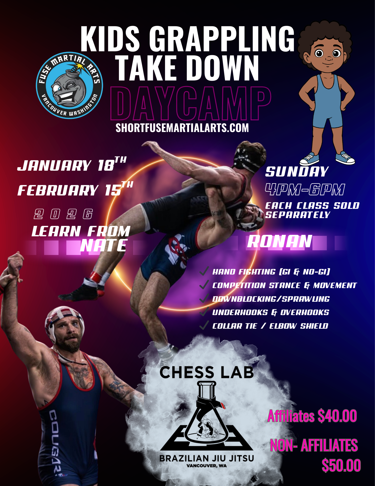 Help young grapplers and wrestlers level up their takedowns, hand fighting, and competition readiness for Gi & No-Gi.